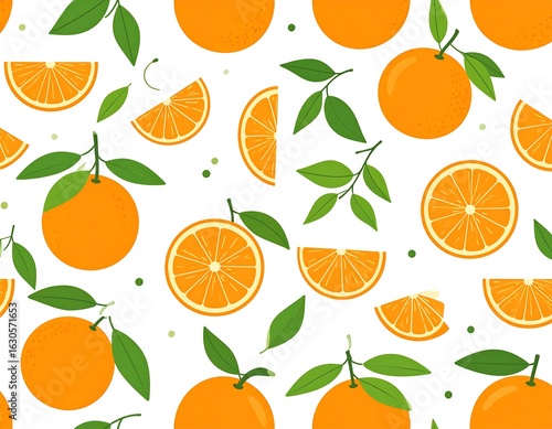 Fresh orange slices and whole oranges