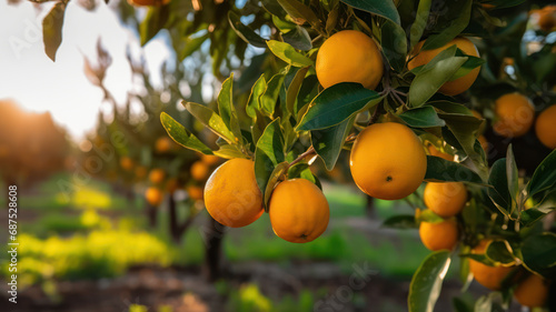 Fresh oranges on a tree, Freshly grown oranges on a farm, AI generated