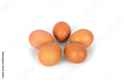 Fresh organic brown eggs isolated in white background