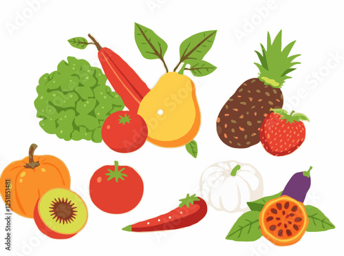 Fresh Organic Fruits and Vegetables Vector Illustration