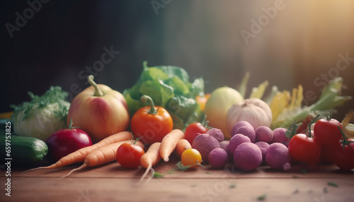 Fresh organic vegetables on rustic wooden table, healthy eating collection generated by AI