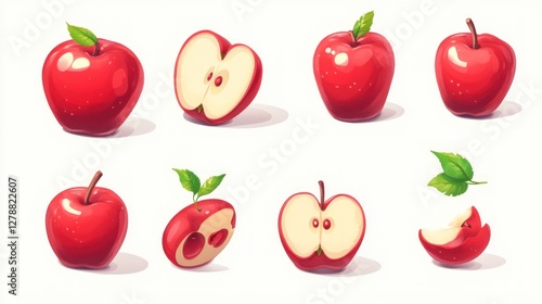 Fresh red apples on display Whole, sliced, background for nutrition & healthy food