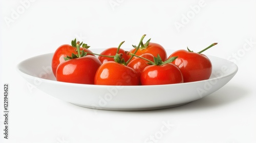 Fresh Red Cherries on a White Plate with Stems