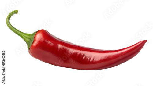 Fresh Red Chili Pepper Isolated on transparent. - Vibrant red chili pepper with a glossy texture and green stem, isolated on a transparent background, symbolizing spice and flavor.