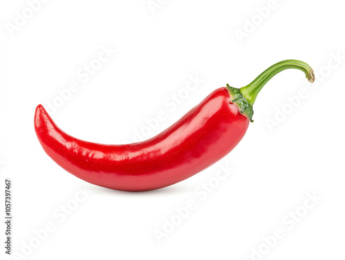 Fresh red chili peppers arranged on white background, showcasing their vibrant color and smooth texture. These chilies add spicy touch to various dishes and are staple in many cuisines