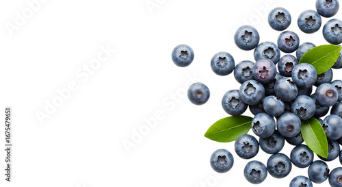 Fresh ripe blueberries with green leaves isolated on transparent background