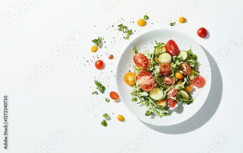 Fresh Vegetable Salad with Tomatoes and Cucumbers on White Background