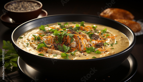 Fresh vegetable soup, a healthy homemade gourmet lunch generated by AI