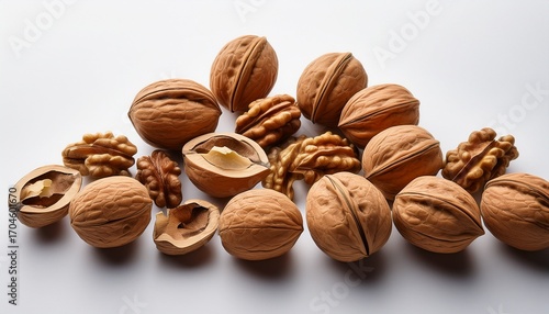 Fresh Walnuts Arranged On White Background For Nutty Food Photography