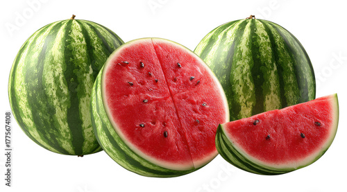 Fresh watermelons, whole and sliced, display vibrant colors and patterns