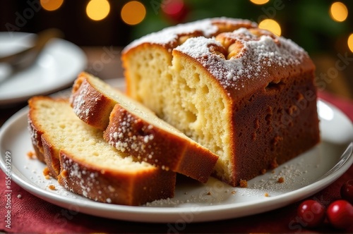 Freshly baked cake with a slice removed, perfect for serving or snacking..New Year 2026.