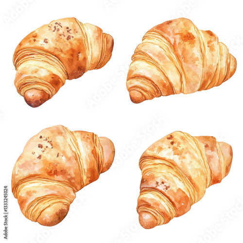Freshly baked croissants in various angles