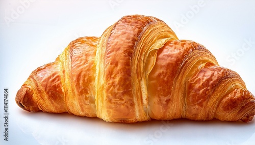 Freshly baked golden croissant with flaky layers, isolated on a white background, perfect for bakery promotions, food advertisements, or menu designs