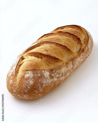 Freshly Baked Loaf of Crusty Bread on White Background Displaying Golden Brown Crust and Airy Texture