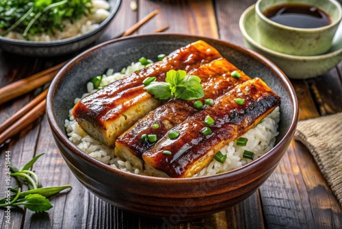 Freshly cooked fluffy rice bowls with succulent grilled eel, crunchy scallions, and crispy nori, all drizzled with rich and savory unagi sauce.