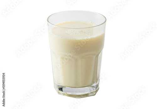 Freshly poured glass of creamy milk on a clean surface with soft lighting
