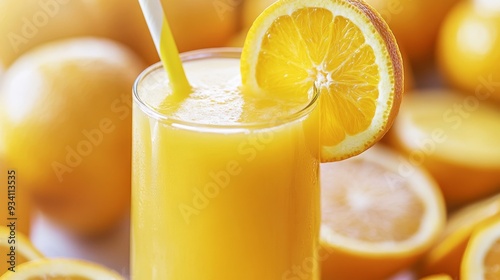 Freshly squeezed orange juice with sliced citrus fruits