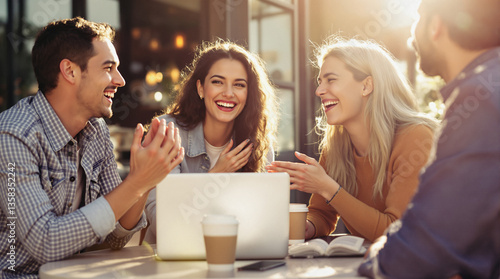 Friends Enjoying Coffee and Laughter at Outdoor Café