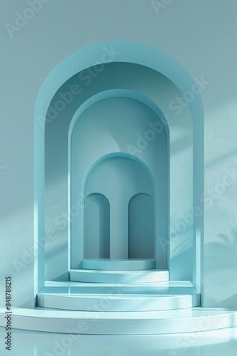 front view of 3d product mockup scene for products, relatively empty scene, plain colour, pastel colour 2:3, blue