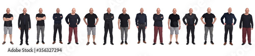 Front view of a man in various outfits sportswear,casual,pajamas,elegance,shorts on white background,