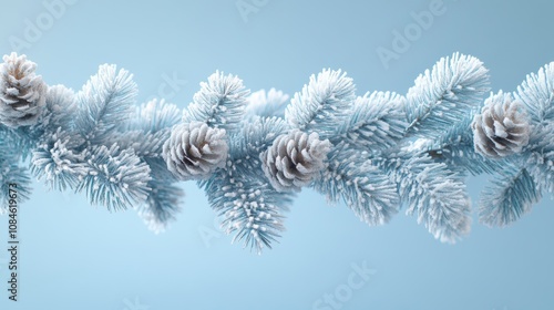 Frosted pine garland with lights on light blue background