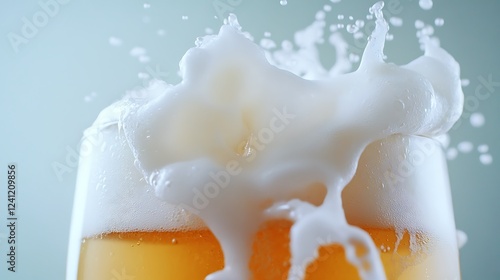 Frosty beer with foam spilling over the rim
