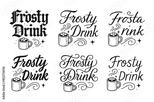 Frosty Drink Styles. Frosty Drink. Create a calligraphy lettering illustration of the phrase: Frosty Drink.