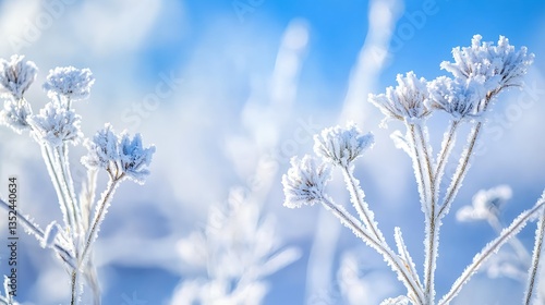 Frozen Abstraction of Delicate Flowers and Frosty Plants in Winter