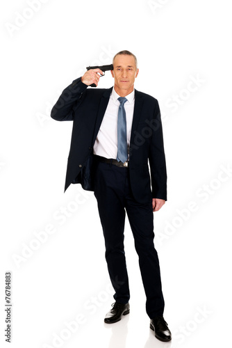 Full length mafia man with handgun near head