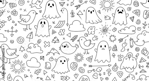 Fun Charming Doodle Pattern in Black-and-White Line Art