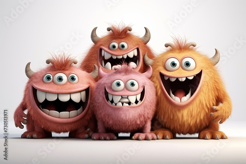 Funny and cute colorful monsters with big open mouths as copy space. Cute Monsters Vector Set. Generative AI.