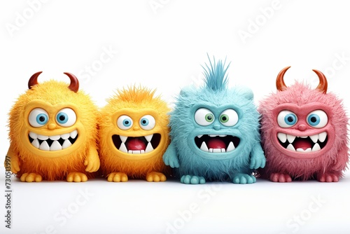 Funny and cute colorful monsters with big open mouths as copy space. Cute Monsters Vector Set. Generative AI.
