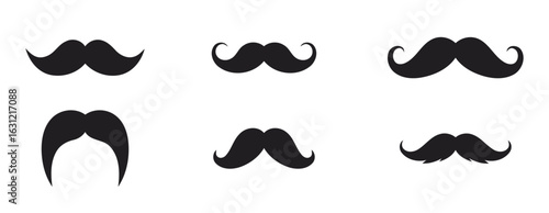 Funny Black Mustache Vector Set, Various Vintage and Modern Facial Hair Styles