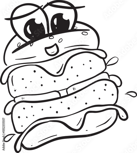 Funny Cartoon Beef Burger Or Cheeseburger Logo Fast Food Illustration