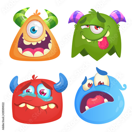 Funny cartoon monsters set. Halloween vector illustration