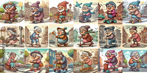 Funny granny ride board. AI generated illustration