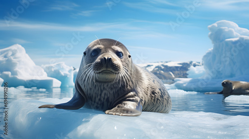 fur seal on an ice floe, sunny day