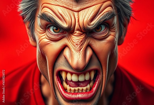 Furious expression formed from various facial features, rage, disturbed