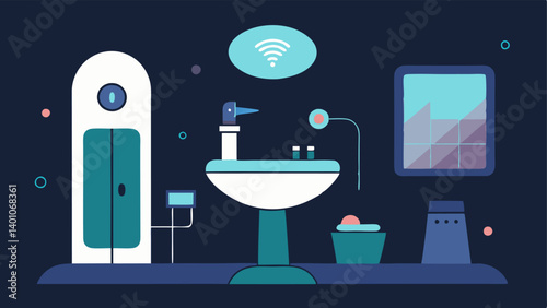 Future of Skincare A conceptual depiction showing the skincare device integrated into a hightech bathroom environment symbolizing the future innovation in personal beauty routines.