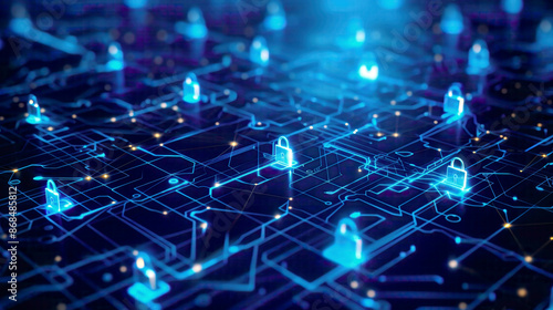 Future technology web services for business and internet projects cybersecurity and network protection theme digital lock symbols and interconnected network lines