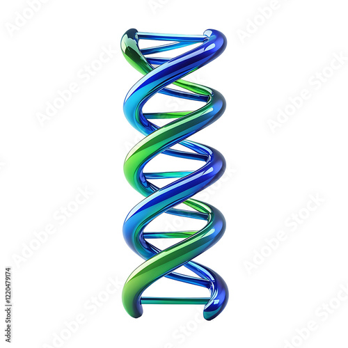 Futuristic 3D DNA Helix Structure with Blue and Green Twisting Strands Representing Biotechnology Genetics and Molecular Science on White Background