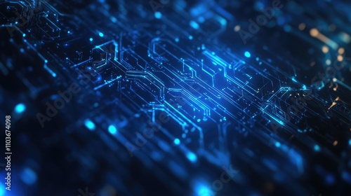 Futuristic blue abstract background featuring intricate medical technology circuitry and luminous digital elements