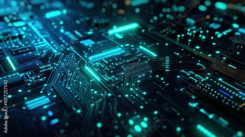 Futuristic blue and green abstract electronic circuit board,
