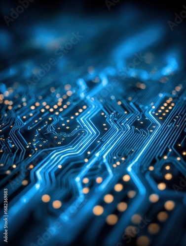 Futuristic Blue Circuit Board Design: High-Tech Motherboard Illustration for Modern Technology and Innovation