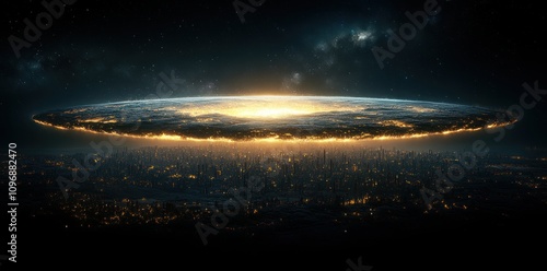 Futuristic Cityscape Beneath A Glowing Celestial Body