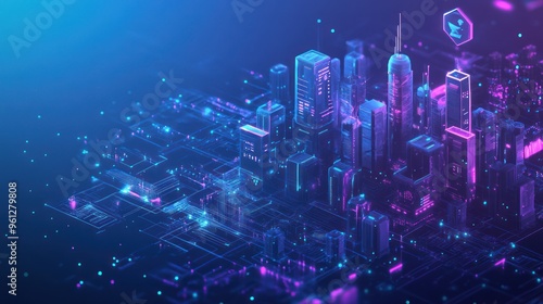 Futuristic Cityscape on a Circuit Board