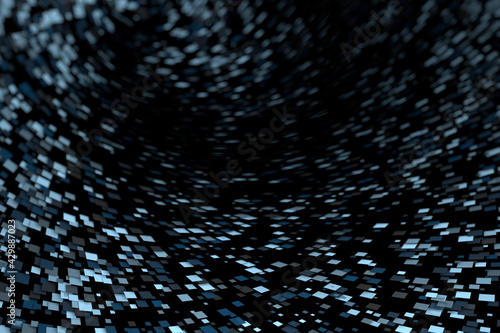 Futuristic composition with flying particles in black blue color
