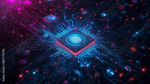 Futuristic cyber security concept with fingerprint on microchip circuit board design