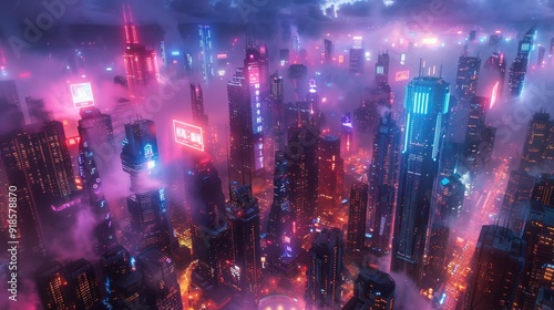 Futuristic cyberpunk city with neon lights and skyscrapers - generative ai