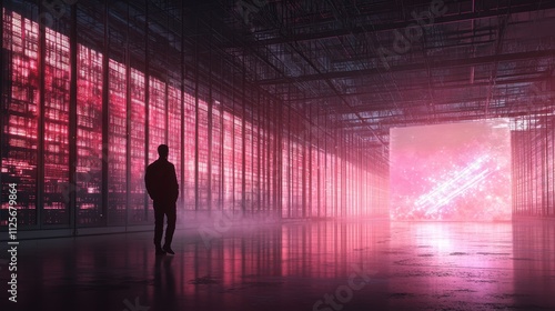 Futuristic data center exploration urban area digital art high-tech environment wide angle innovation insights